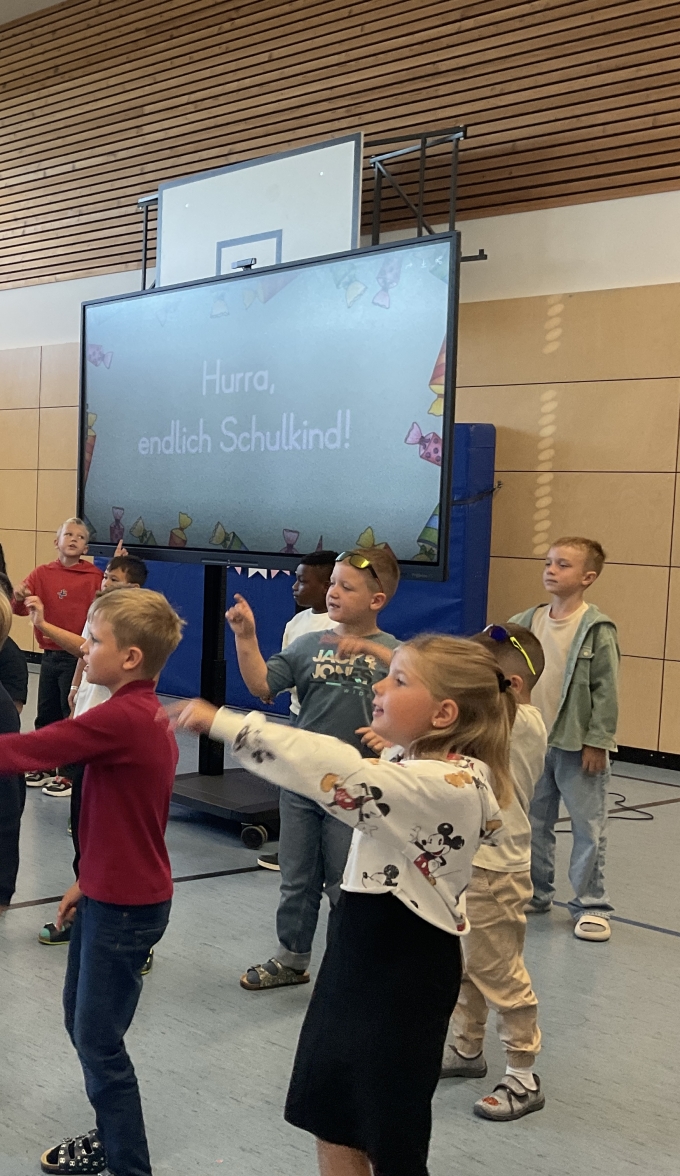 Am 16.09.2025 wurden unsere neuen Erstklässlerinnen und Erstklässler im Rahmen der Einschulungsfeier herzlich an unserer Schule willkommen geheißen. Hierfür haben die beiden zweiten Klassen ein kleines Rahmenprogramm aus einem kleinen Schauspiel sowie Liedern und Tänzen vorgeführt. Vielen Dank dafür!