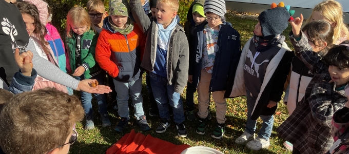 Am 29. Oktober setzte die Klasse 1a verschiedene Blumenzwiebeln in die Erde, damit diese im Frühjahr blühen. Dabei entdeckten die Kinder zahlreiche Würmer und sogar zwei Engerlinge. Die Aktion hat allen viel Spaß gemacht und nun hoffen wir, dass im Frühjahr schöne Blumen zum Vorschein kommen.
